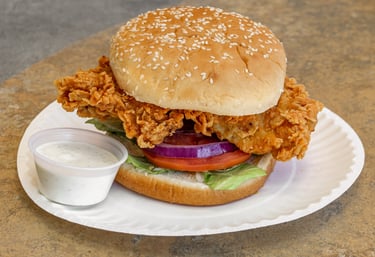 Crispy spicy chicken fillet layered with lettuce, cheese, and creamy mayo in a toasted bun — bold flavor, perfect crunch!